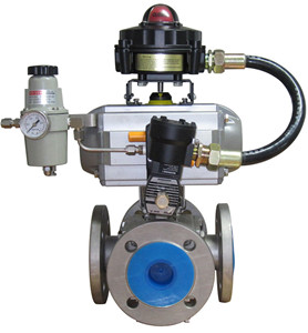 氣動(dòng)四通法蘭球閥適用于各種輕重工業(yè)及樓宇管道.廣