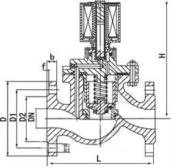 本閥通徑15~100為膜片式為二次開(kāi)閥的先導式電磁閥,通徑125~300為三次開(kāi)閥的先導式電磁閥,其結構主要由副閥和主閥組成。根據斷電時(shí)所處開(kāi)關(guān)狀態(tài)的不同,可分為常閉電磁閥和常開(kāi)電磁閥。常閉電磁閥,常位時(shí),活動(dòng)鐵芯封住副閥口,閥腔內壓力平衡,副閥、主閥口封閉。當線(xiàn)圈通電,產(chǎn)生電磁力:將活動(dòng)鐵芯吸上,副閥打開(kāi),主閥腔內的介質(zhì)自導閥門(mén)外世,以致主閥閥杯上下產(chǎn)生壓力差,膜片或閥杯被迅速托起主閥口開(kāi)啟,閥呈通路狀態(tài)。